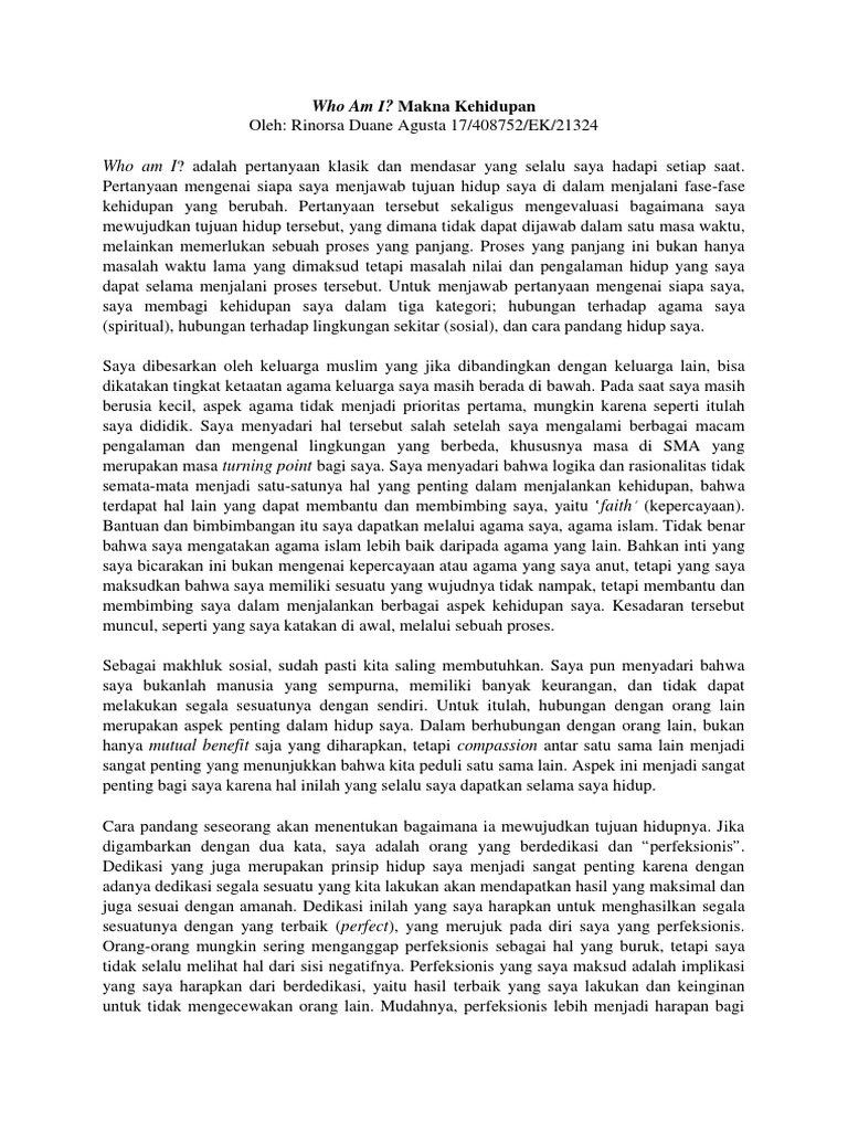 WHO AM I ESSAY QUORA Donald Norwood October 17 2019. Mengenal siapa diri kita sendiri. The uniqueness gives us an identity.